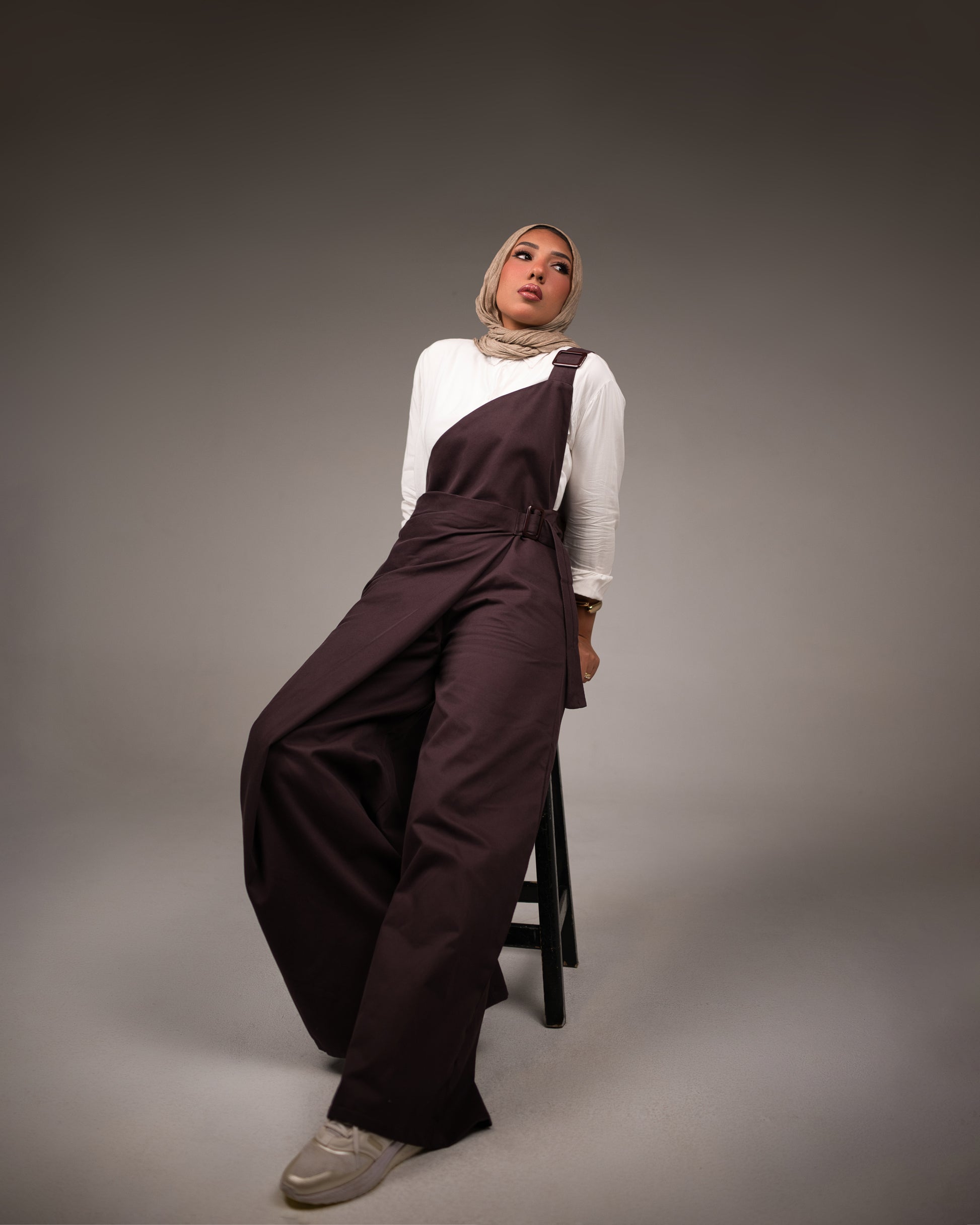 “Not Everyone’s Cup of Tea Jumbsuit”, a statement gabardine jumpsuit that embodies modern sophistication and effortless confidence. Designed with a one-shoulder wrap silhouette and a wide-leg cut, it combines structure with fluidity for a bold yet refined look. The adjustable side belt tie accentuates the waist, while the clean lines and minimalist design give it timeless versatility — perfect for day-to-night transitions.